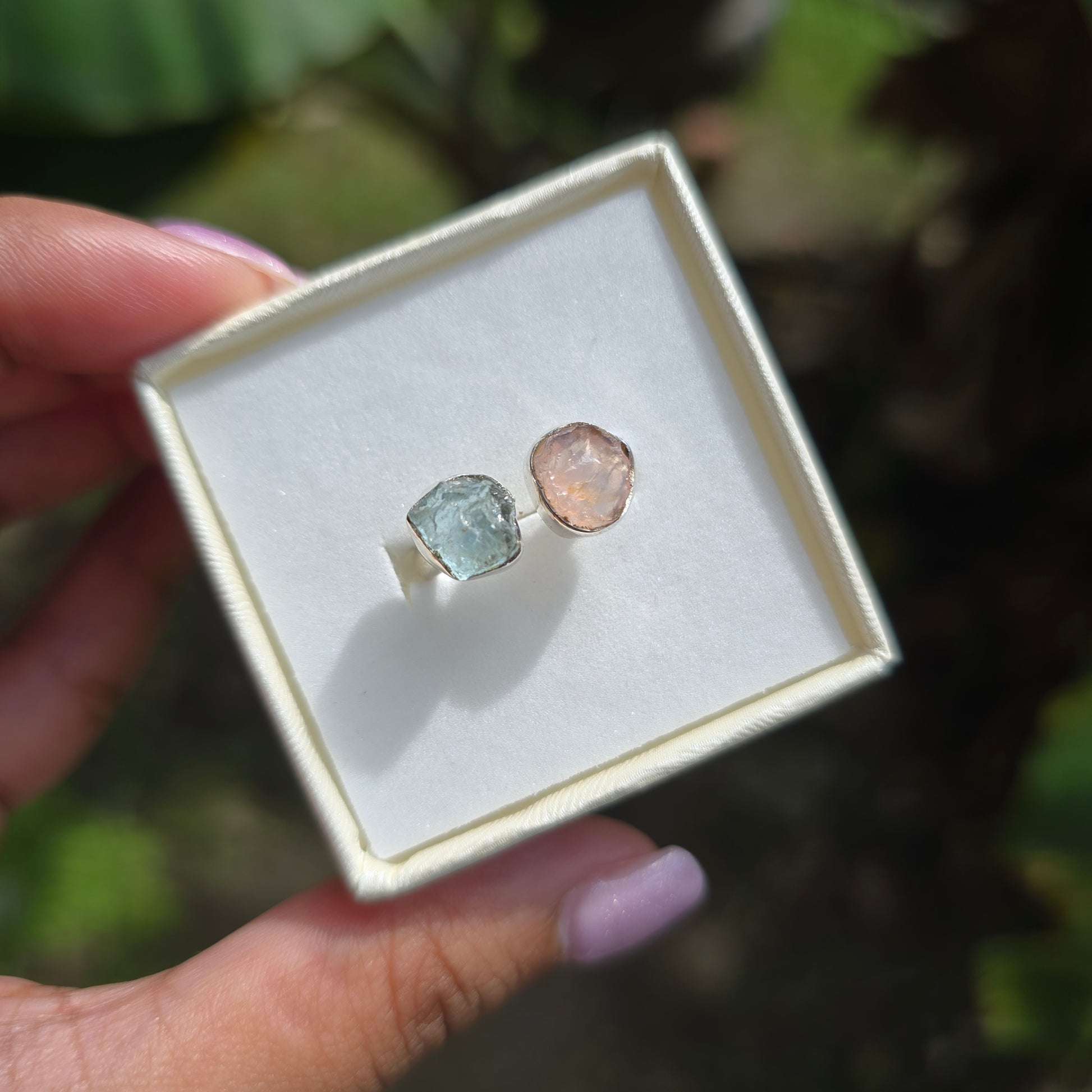 Aquamarine and Rose Quartz Ring - Size 6