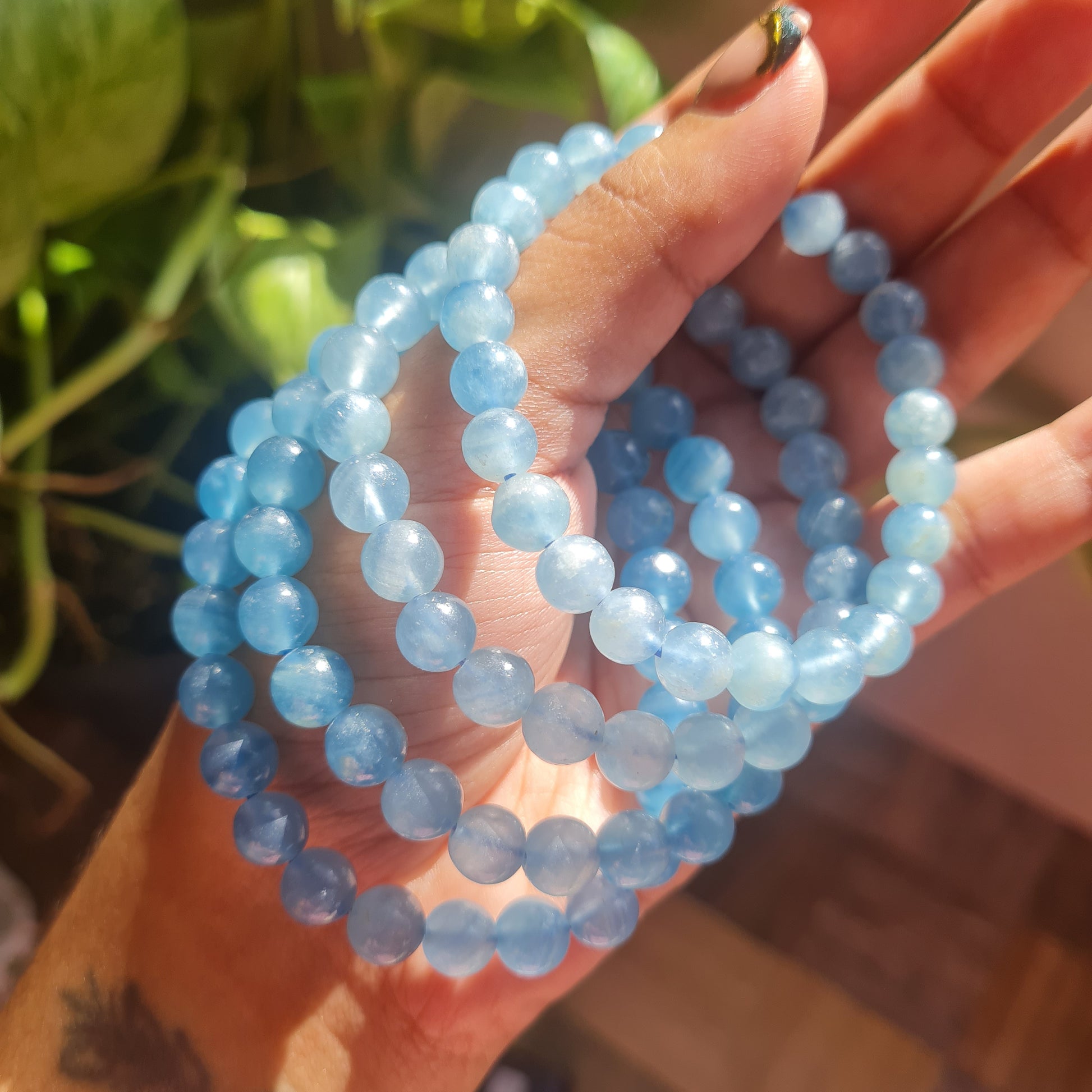 This listing is for a single (1) Blue Calcite Elastic Bracelet (A Grade) - 8mm Beads.