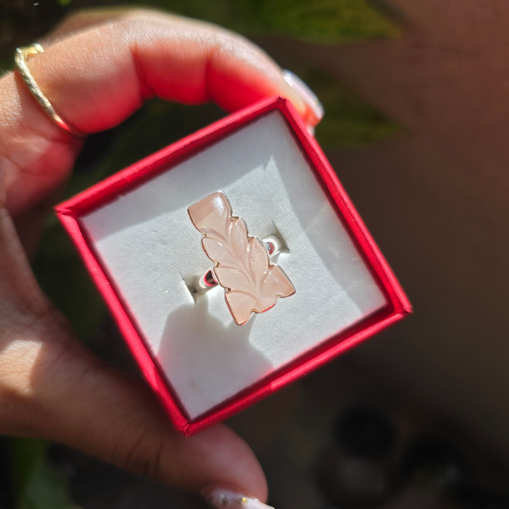 Carved Rose Quartz Gemstone Ring - Size 5.5