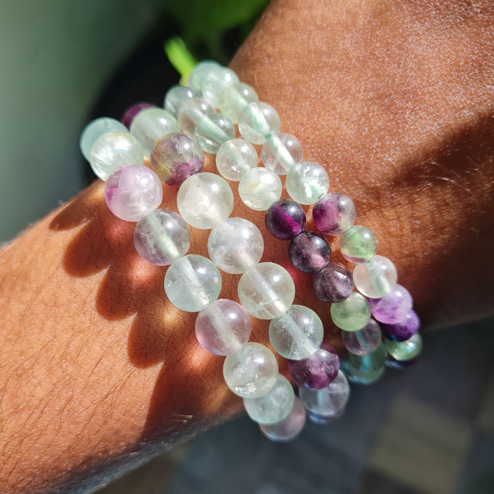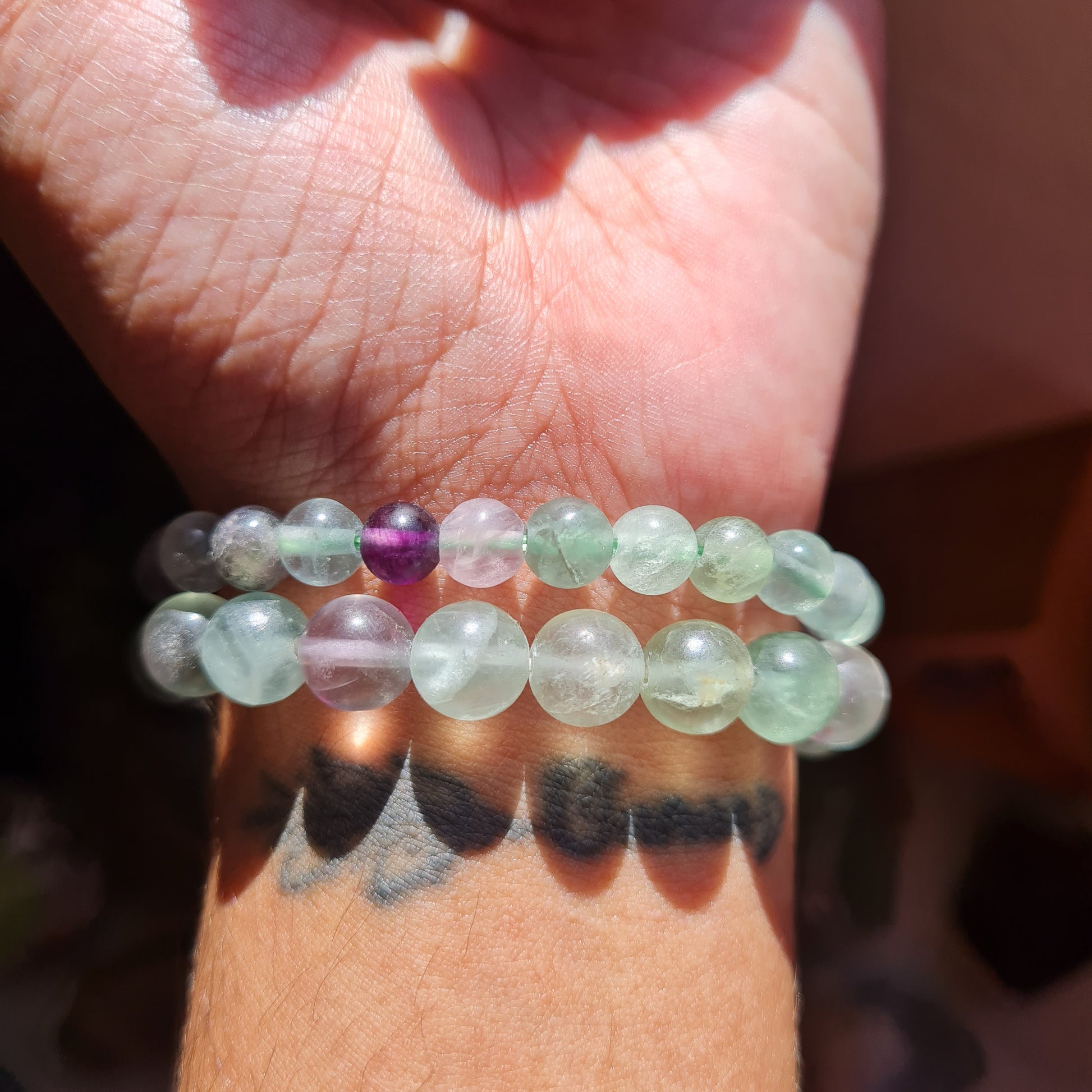 This listing is for a single (1) Rainbow Fluorite Elastic Bracelet (A Grade) - 8mm Beads.