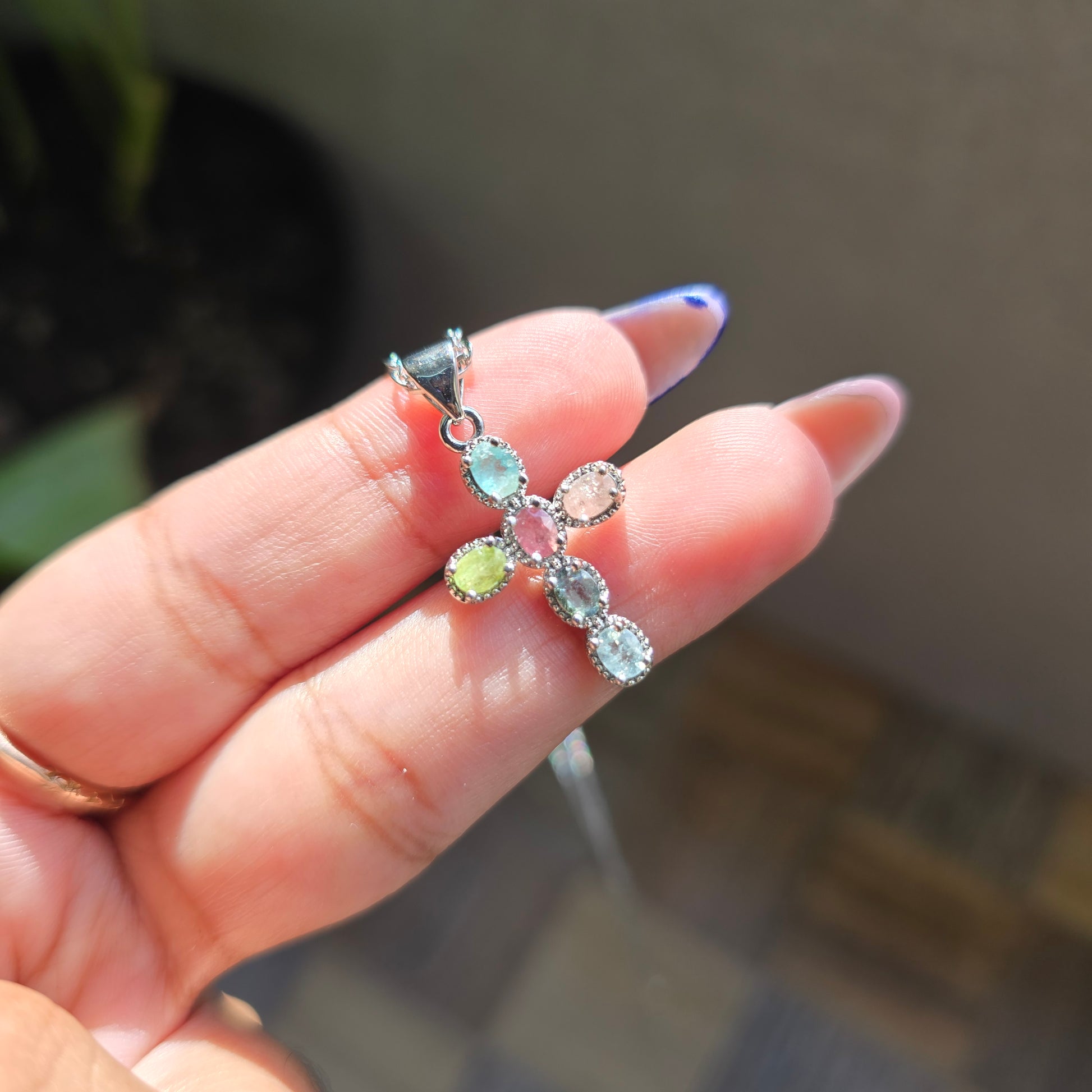 Mixed Tourmaline Pendant - Silver Plated Brass