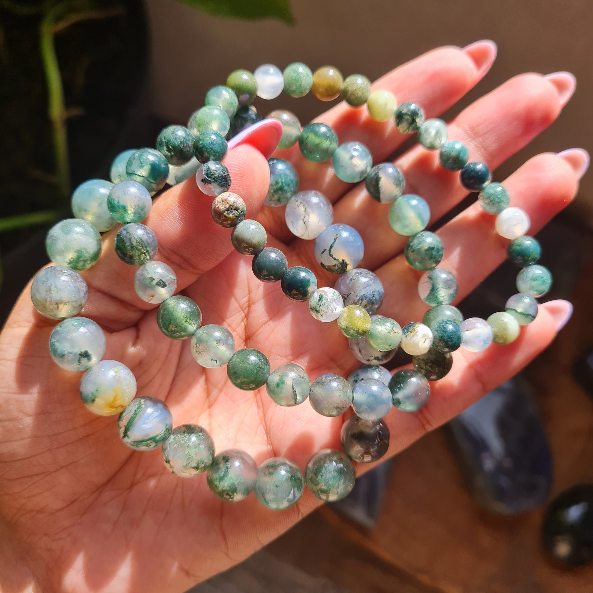This listing is for a single (1) Moss Agate Elastic Bracelet (A Grade) - in 8mm Beads.