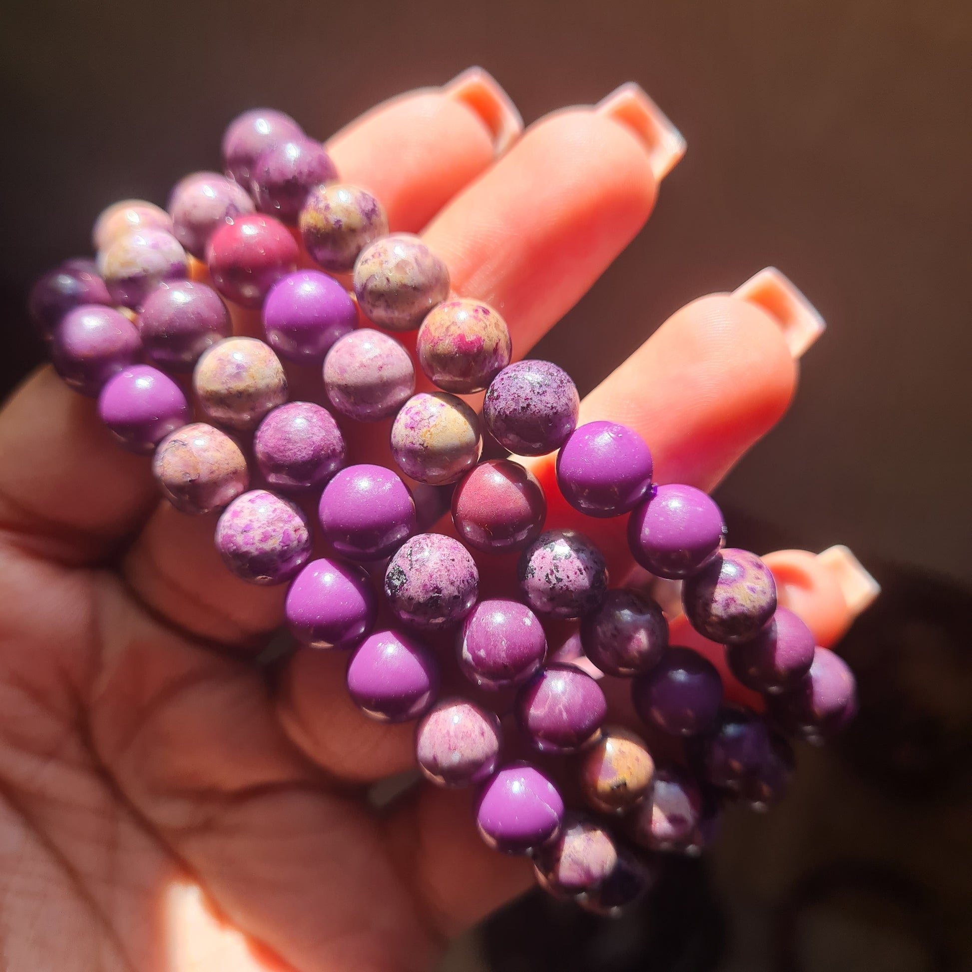 Please note that the photos are stock photos of a few elastic bracelets. Our bracelets are made with natural crystals & gemstones, so each bracelet will have variations in natural characteristics such as color and exact bead size.