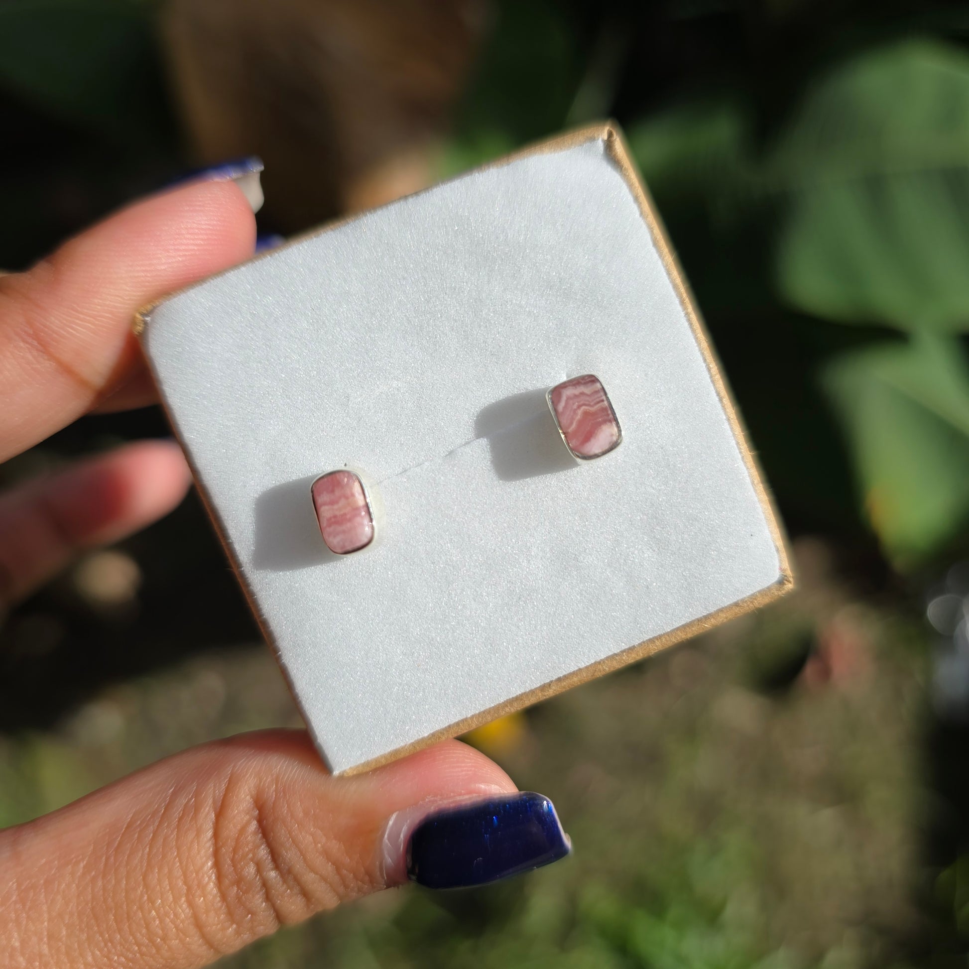 Raw Rhodochrosite Stud Earrings