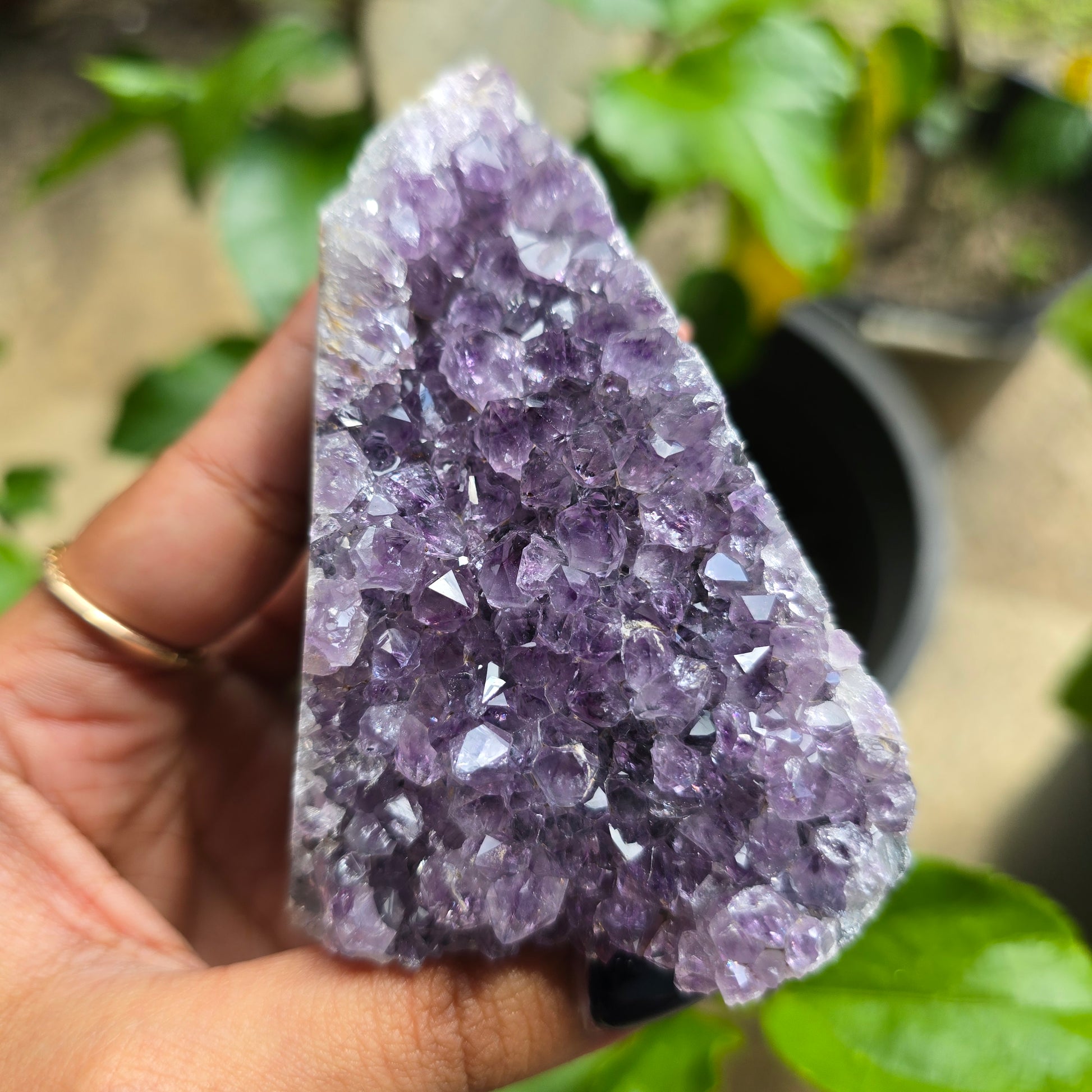This natural Amethyst cluster is believed to promote calm, clarity, and spiritual balance while soothing the mind and supporting emotional harmony. Known as a stone of peace and intuition, Amethyst is often associated with stress relief, meditation, and spiritual awareness, making it a popular crystal for mindful and sacred spaces.