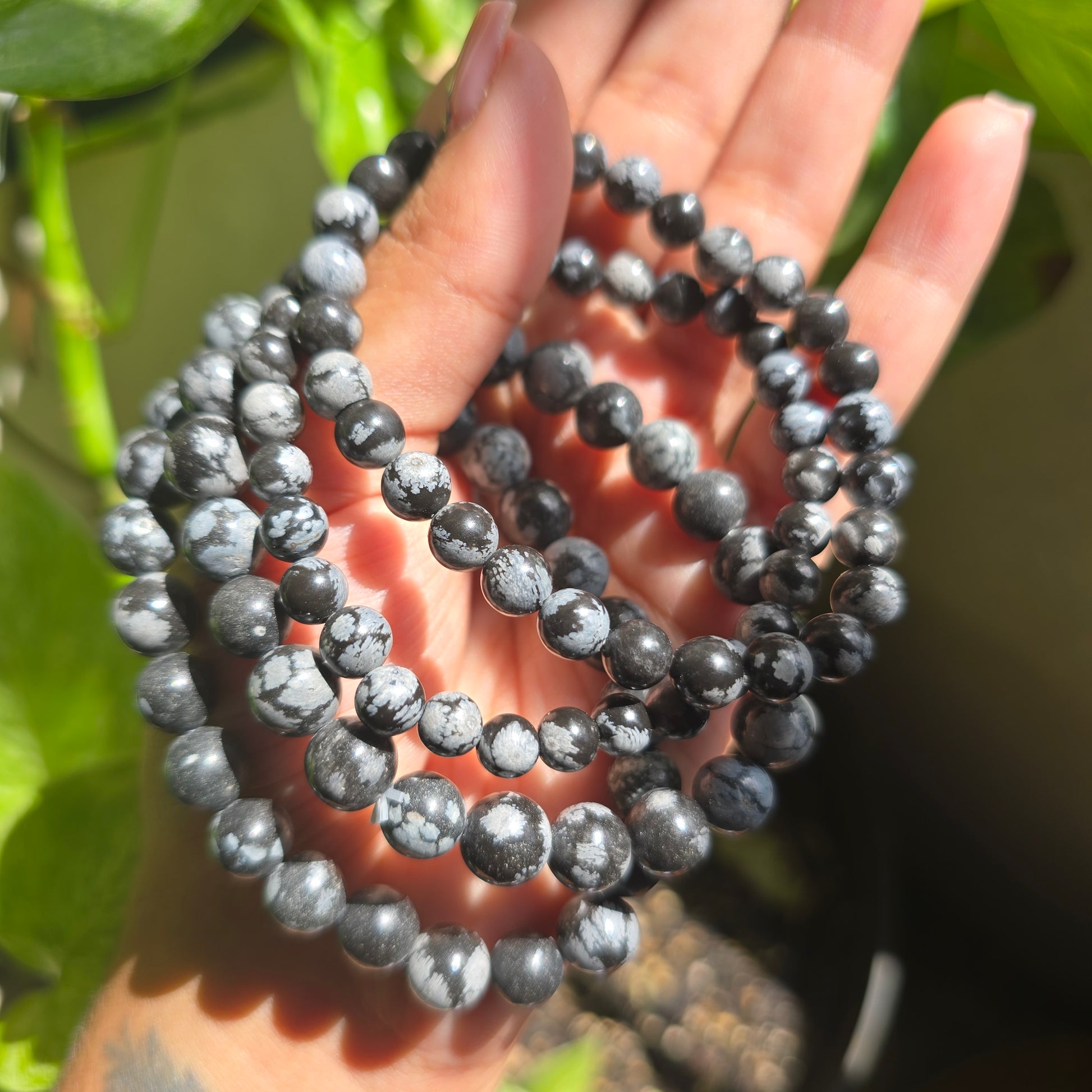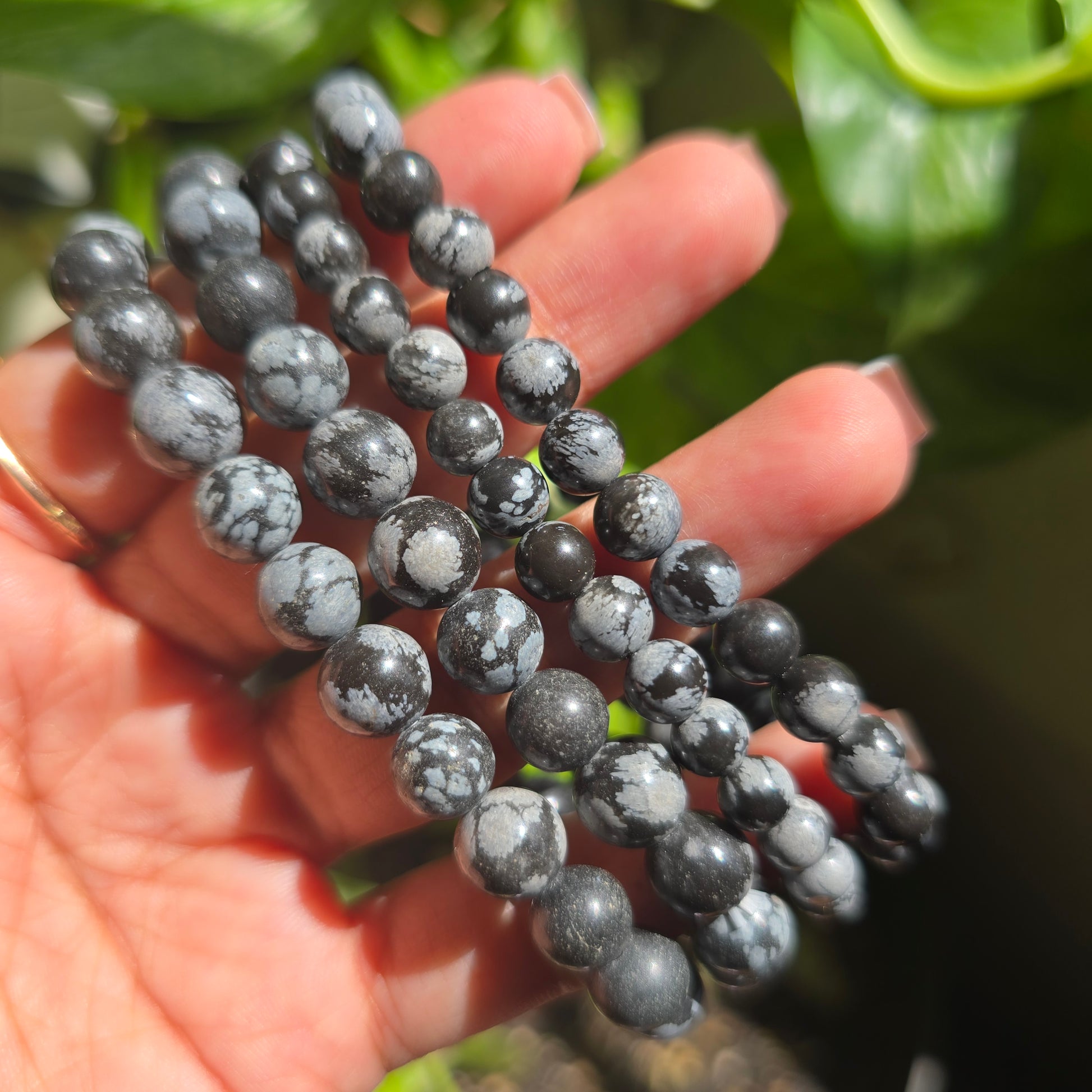 This listing is for a single (1) Snowflake Obsidian Elastic Bracelet (A Grade) - 6mm or 8mm 10mm Beads.
