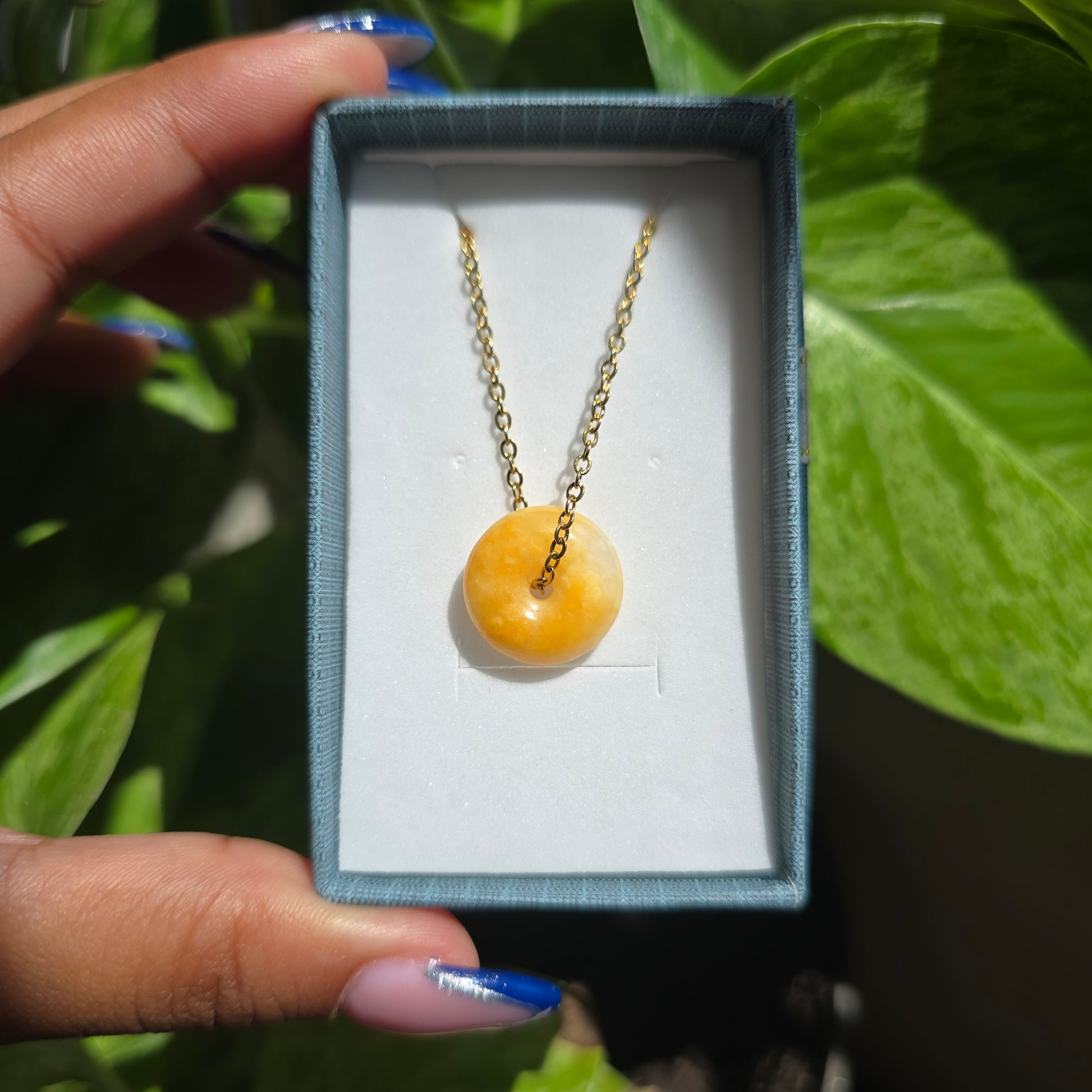 Yellow Jadeite Donut Necklace
